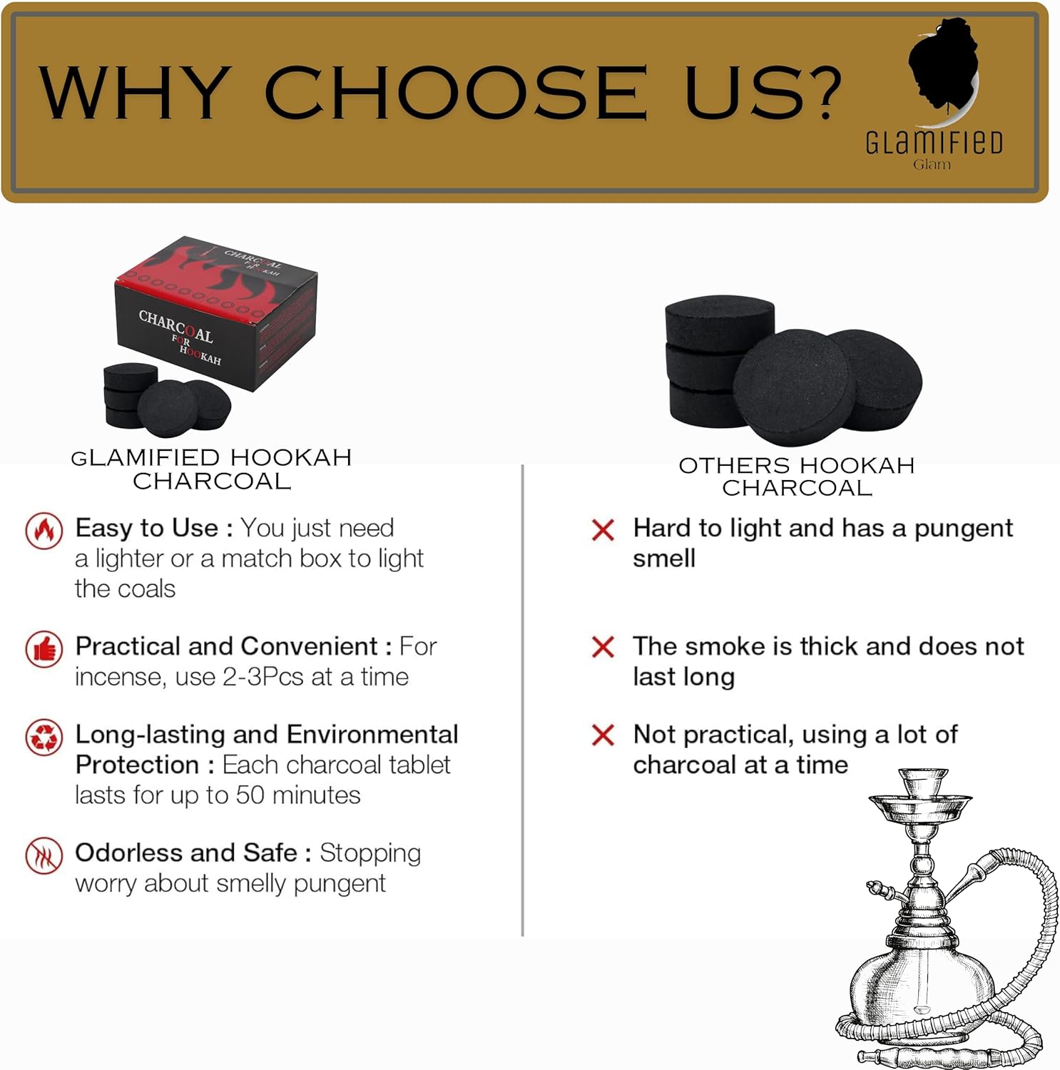 Enjoy a hassle-free smoking experience with Premium Quick-Light Shisha Charcoal. Designed for intense heat and long-lasting burn, these instant-light coals are perfect for hookah, bakhoor, and incense burning. Each box contains 100 discs for extended use. Shop now for high-quality hookah charcoal!